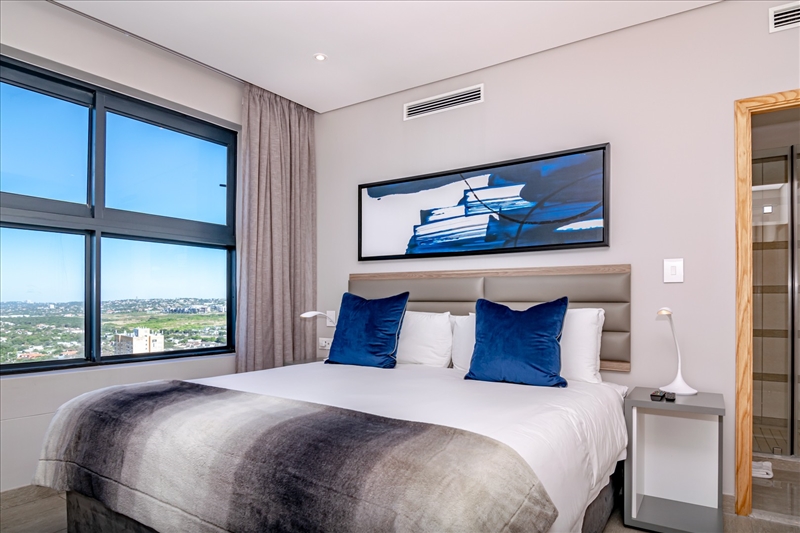 Snug under the Penthouse of PEARL SKY with breathtaking shoreline, sea and interior views over Umhlanga towards the Durban harbour. The Main Bedroom is en-suite with a modern bathroom complete with shower and bath. The second bedroom, also with an en-suite bathroom, opens onto a balcony. The open-plan kitchen and living area flows onto a 18m2 balcony, providing a sense of spaciousness. The apartment is sold unfurnished from the Developer. The Price includes VAT - no Transfer Duty is applicable. Direct access into the Pearls Mall, which offers a range of convenience stores, restaurants, coffee shops, pharmacy, gym and a luxury Spa. 24-hour security add value to an investment that has proven itself over the past 15 years. Make the call ! Municipal Rates are calculated on the advertised price and a once-off Levy Reserve Fund contribution is applicable on purchasing, calculated on the purchase price.