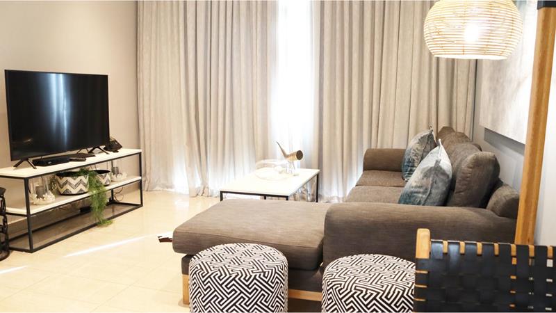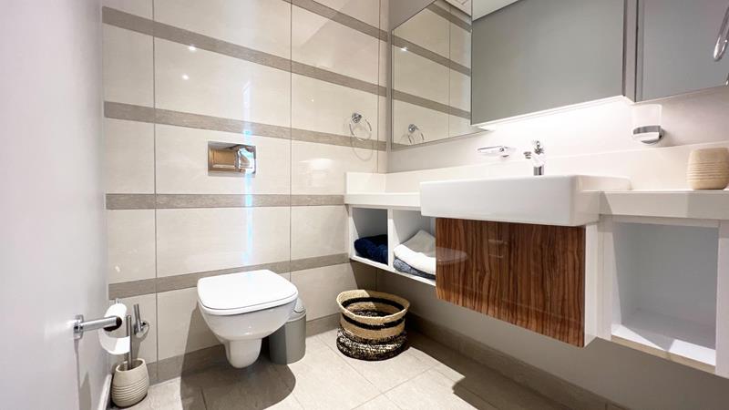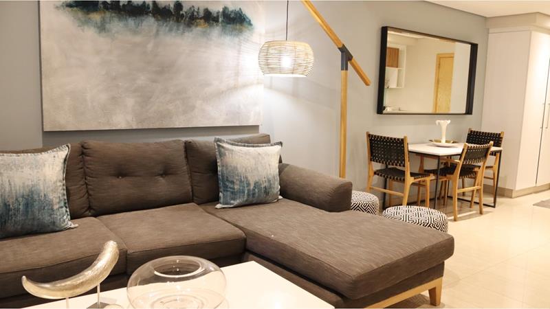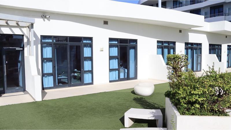 This gorgeous 2-bedroom | 2-bathroom apartment is situated on the ground floor of Pearl Sky which overlooks the hydrotherapeutic heated pool area and offers stunning views of the warm Indian ocean. The spacious main bedroom features built in cupboards and has an en-suite bath with a hand shower, basin, and toilet. The second bedroom offers built-in cupboards as well with a bathroom with shower, basin, and toilet located right next to it. The open plan living area consists of a kitchen, dining area and lounge. Both the lounge and main bedroom have sliding doors which opens up to the hydrotherapeutic heated pool area where one can sit and relax while enjoying picturesque views of uMhlanga.