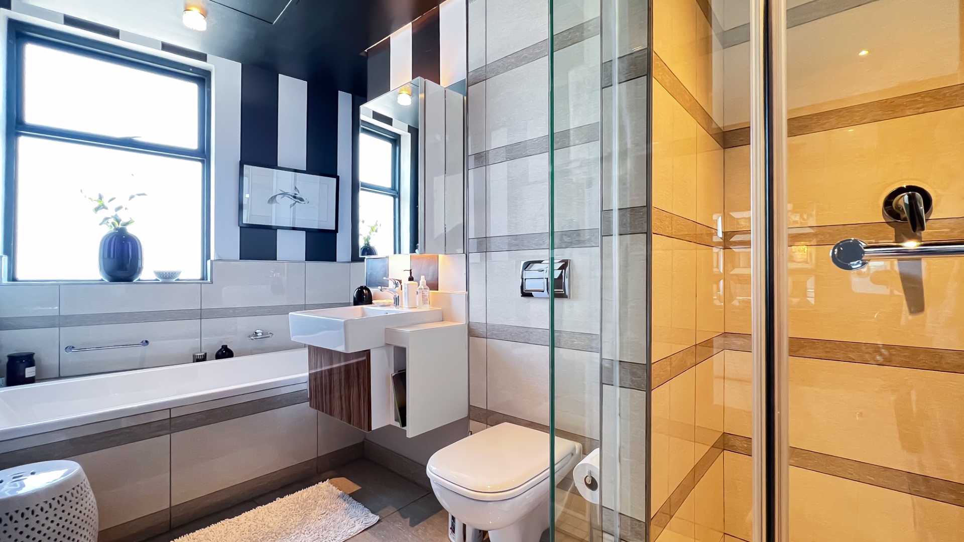 This elegant apartment boasts two generously sized bedrooms, each with its own modern en-suite bathroom. The interiors are tastefully furnished with high-quality finishes, creating a contemporary yet serene atmosphere throughout.