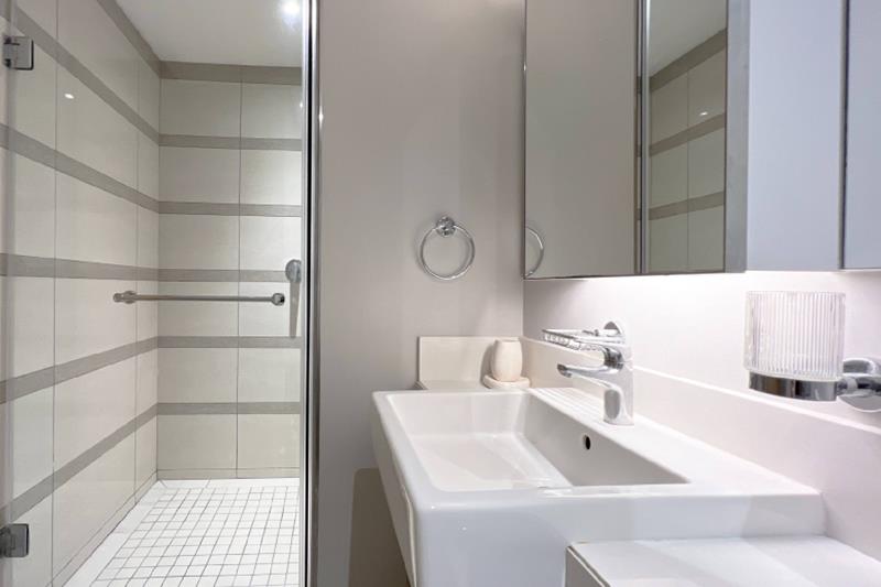 The bedroom and bathroom have been thoughtfully designed with modern finishes, creating a sleek and serene environment ideal for relaxed coastal living.