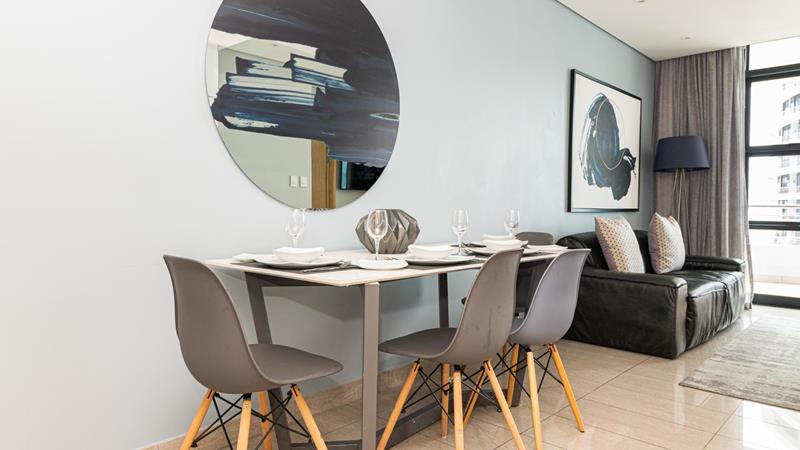 One-bedroom apartments in the prestigious Pearls of Umhlanga are in high demand and rarely available, making this offering a unique opportunity. This exquisite apartment comes fully furnished and equipped, ensuring you have everything you need to enjoy a comfortable living experience.