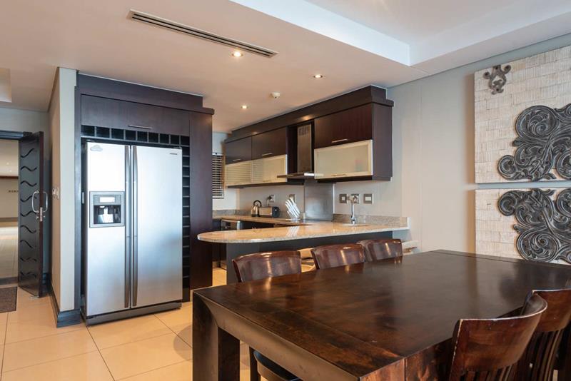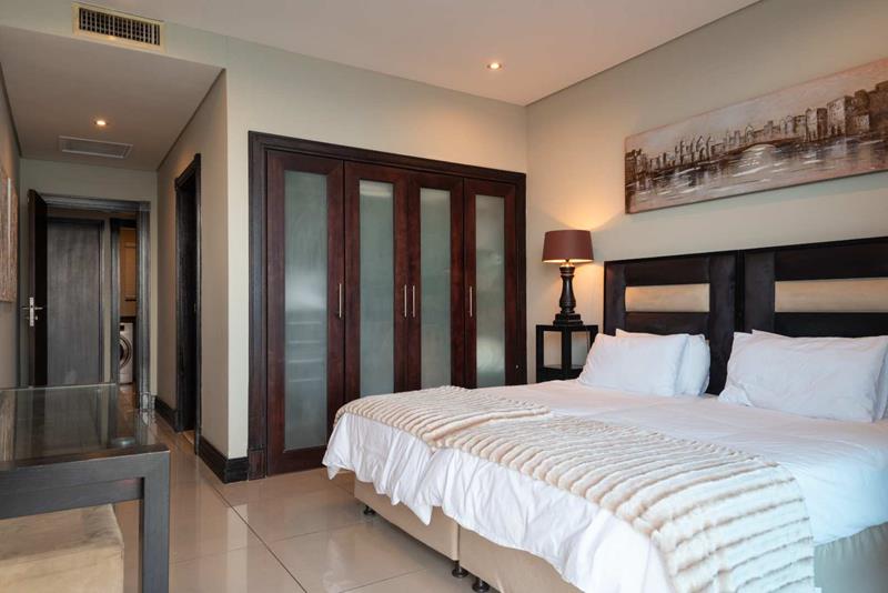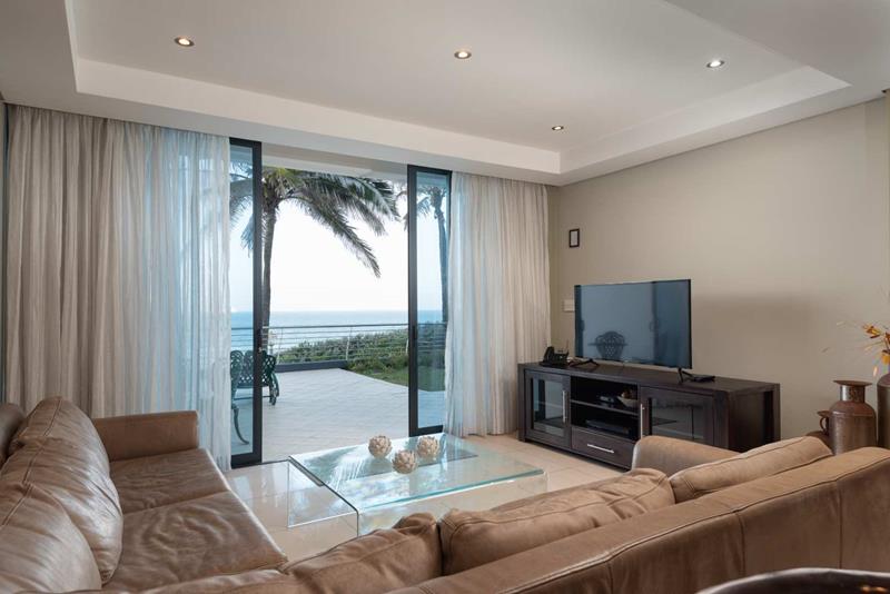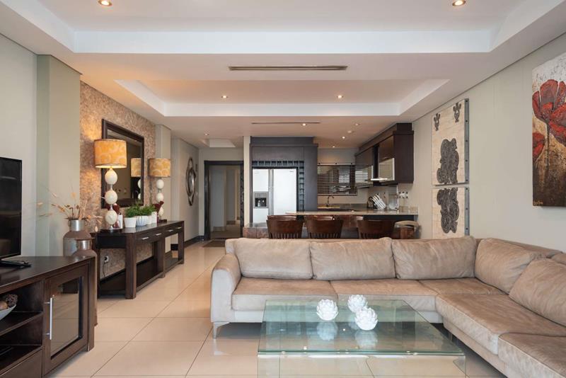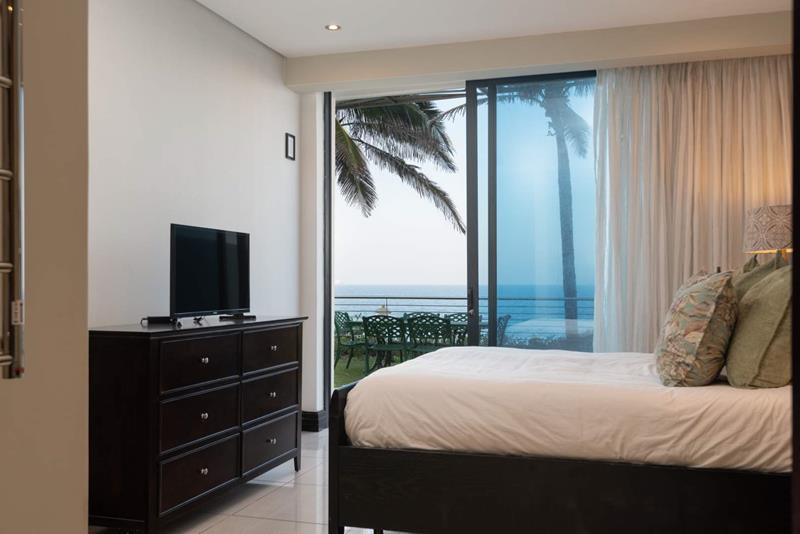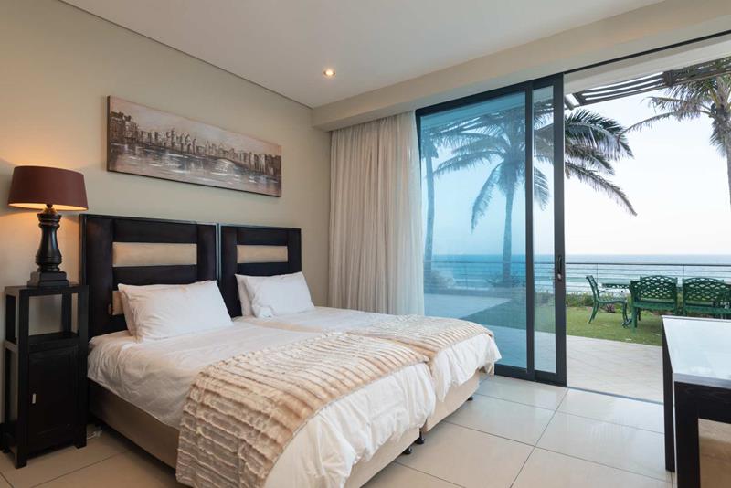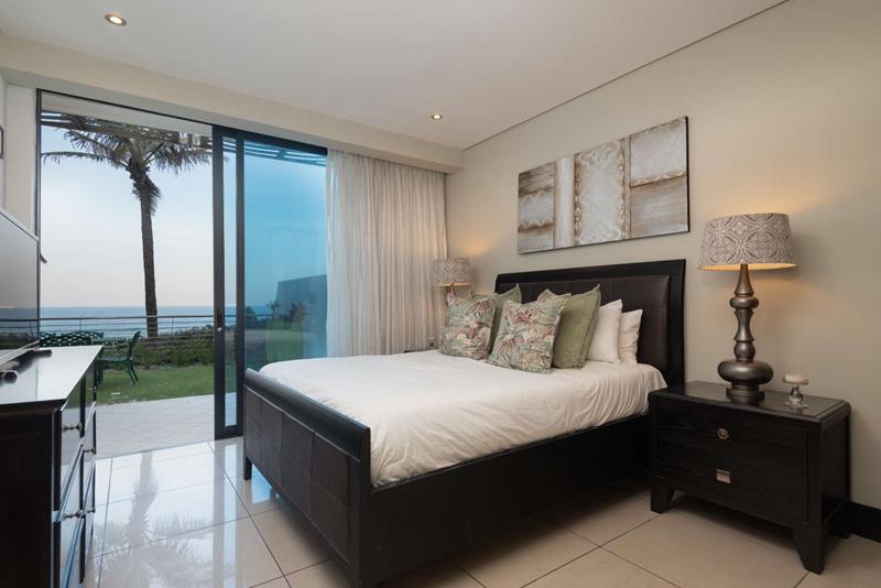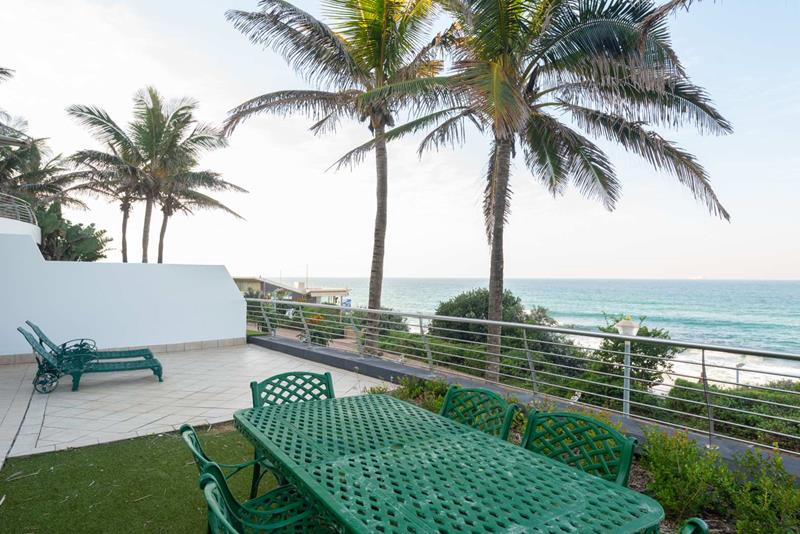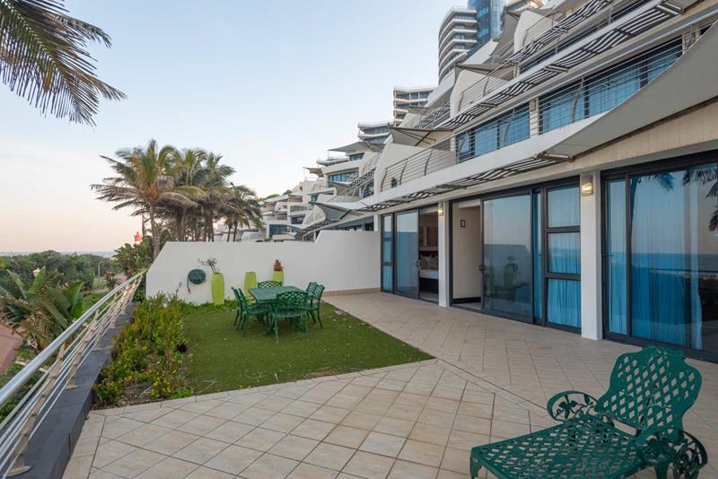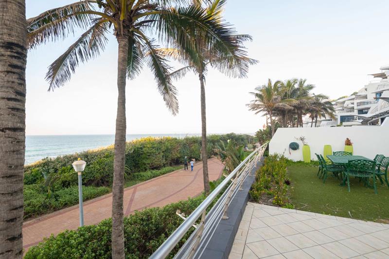 Drive straight up to the front door of this fabulous ground floor fully furnished apartment overlooking the Umhlanga beachfront promenade. 2-bedrooms, 2-bathrooms and a separate guest toilet. The bedrooms have their own en-suite bathroom (the main has a bath and shower). Both bedrooms and the living area flow out onto a large patio/garden, ideal for relaxing in the sun and perfect for entertaining.