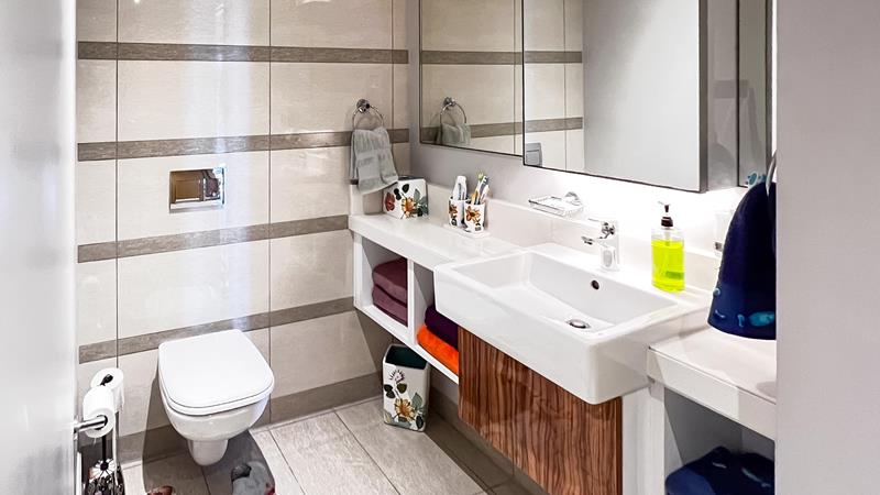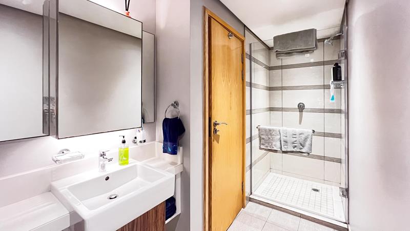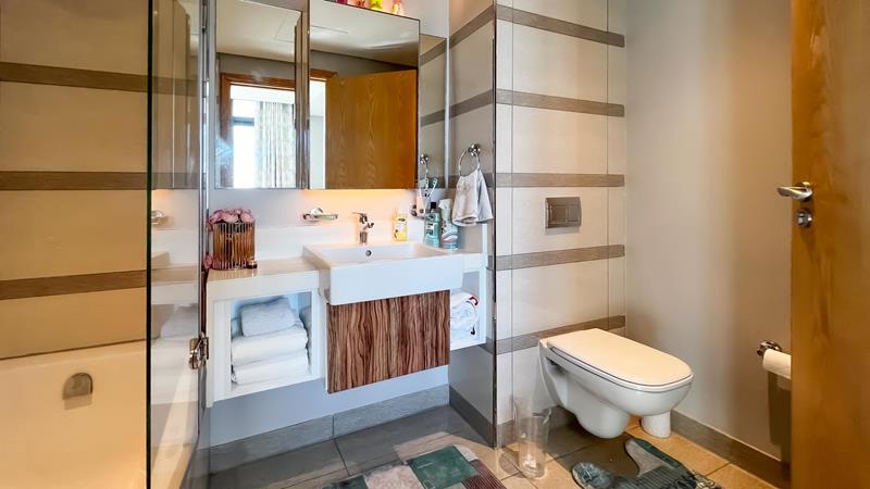 The main bedroom offers a private balcony and an en-suite bathroom with a luxurious shower tub, providing a tranquil oasis to start your day. The second bedroom also features an en-suite bathroom with a shower, ensuring privacy and convenience for both residents and guests.