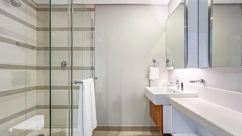 The bathroom is a sanctuary of modern comfort, featuring a luxurious shower where you can unwind and rejuvenate after a day of seaside adventures. Every detail has been carefully considered to enhance your living experience, from the sleek fixtures to the stylish finishes that adorn the space.