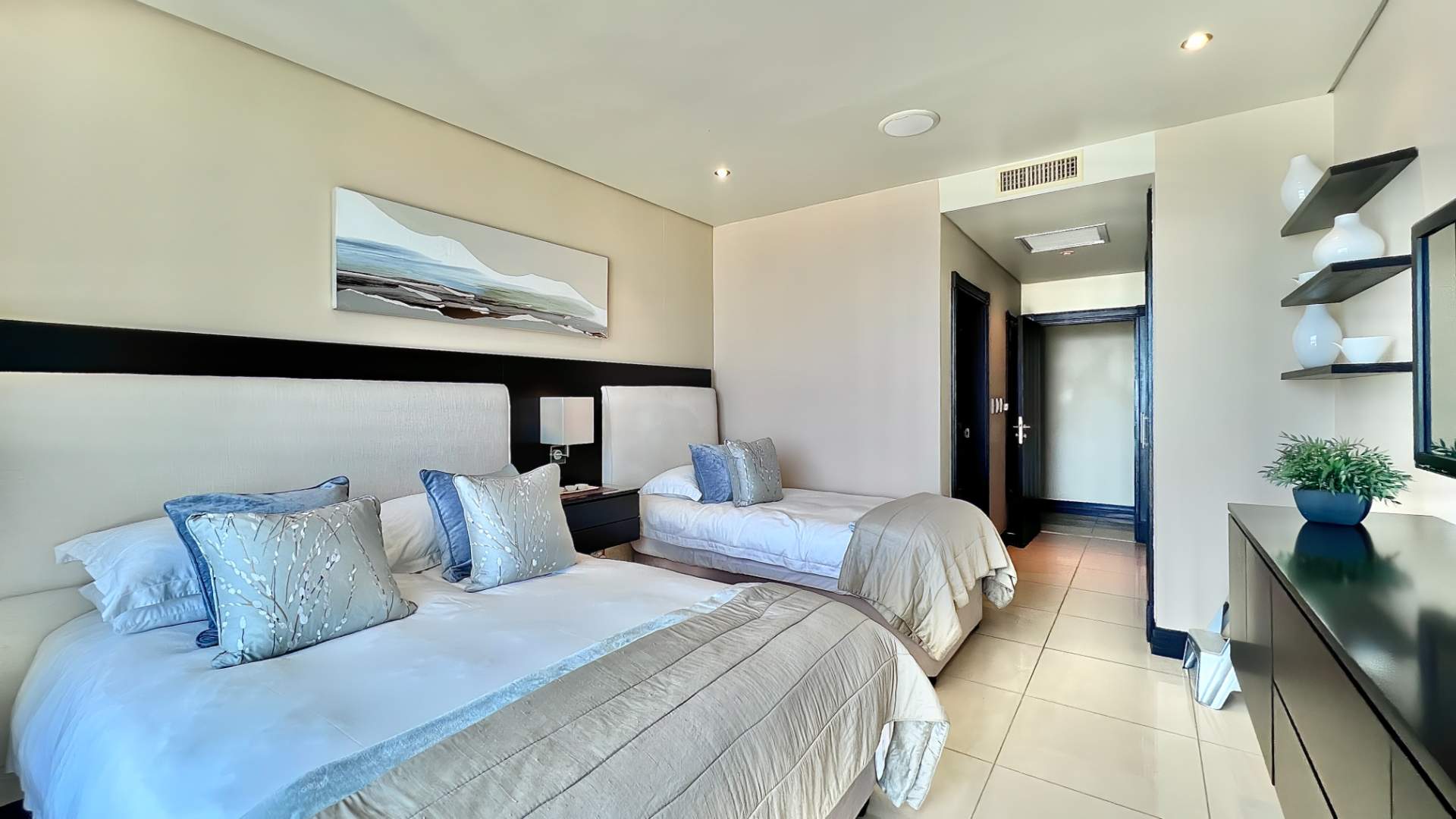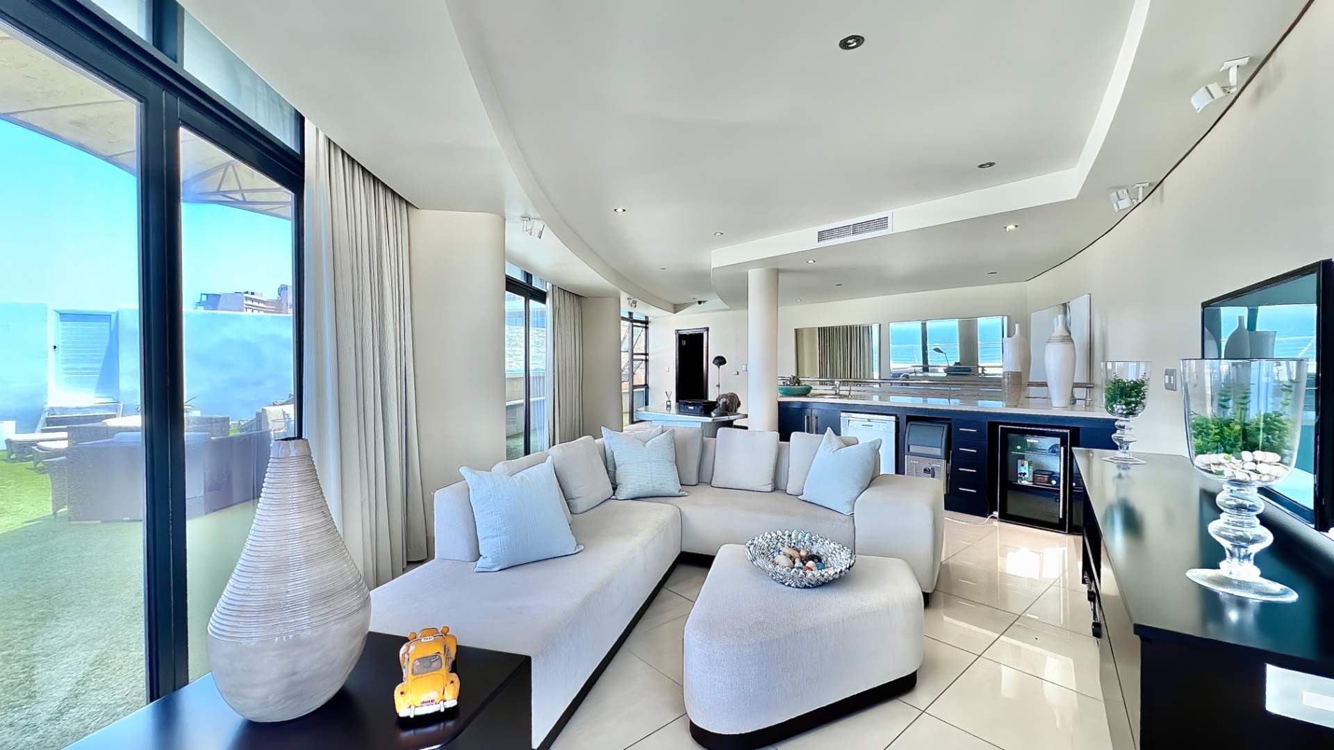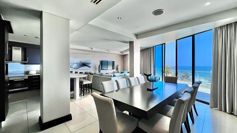 This exceptional double-storey apartment offers a rare opportunity to own a beachfront home with space, privacy, and uninterrupted sea views. From the moment you enter, a generous foyer leads into a comfortable sitting area, setting the tone for the scale and flow of the home. The layout has been thoughtfully designed to balance everyday living with luxury, including a dedicated home gym and a separate scullery and laundry room that keeps the main living spaces uncluttered.